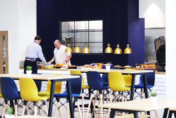 Our location next to a 100-seater restaurant means we can arrange everything from simple tea and coffee to full meals with menus crafted by our on-site catering partners.